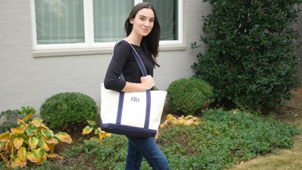 The Boat Tote! I love this bag. Specifically the one with the top zipper. I have it in both the medium and XL sizes. I love the medium for everyday use and I love the XL for traveling. You can also have this bag monogrammed which I just think is so cute and personal! This is an easy option, less expensive, easy to clean, and bottom line, cute.