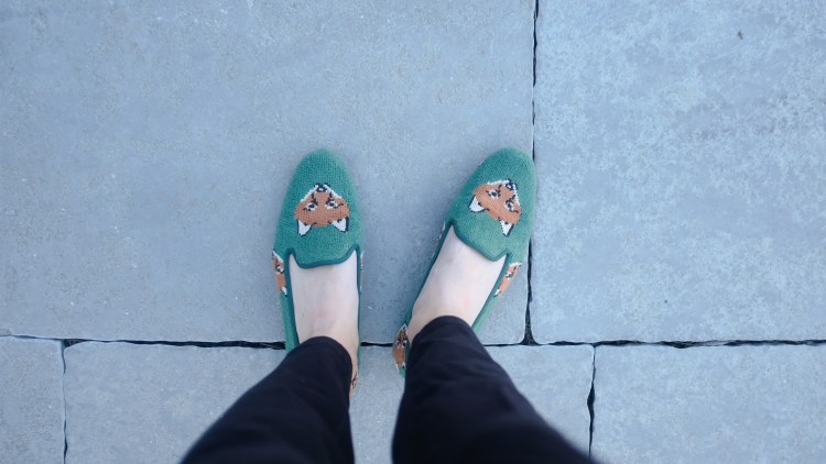I found this adorable pair of fox shoes. I liked them online but loved them when I finally saw them in real life. These shoes are surprisingly comfortable (granted, I did order a half size up so they are a bit more roomy) and add a little bit of elevation to any outfit because of their sophisticated silhouette. I also love that these shoes have a needlepoint look! I love needlepoint so I feel like I am wearing a little bit of my hobby with me everywhere I go when I am wearing these shoes. I know the foxes may not be everyone’s cup of tea, but I love that I can wear them to work and look put together, while still being young, fun, and me!